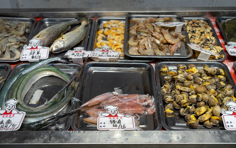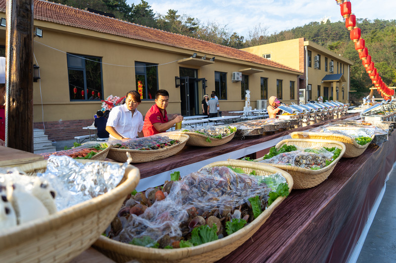 住在長(zhǎng)島的漁號(hào)客棧,沒(méi)幾步就是一間海鮮館子。店里擺滿了各種各樣新鮮的海鮮。客人現(xiàn)場(chǎng)選擇,按照喜好的烹調(diào)方式,廚師烹制成一道道美味的海鮮小菜。