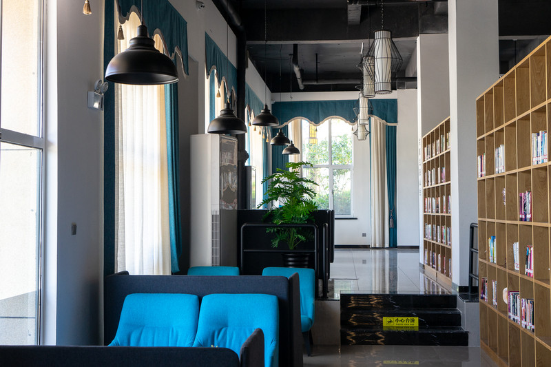 客棧的大廳也別具一格,天花板上垂下的五顏六色的點(diǎn)綴,讓大廳瞬間生動(dòng)起來(lái)。休息區(qū)的書(shū)架上擺滿了書(shū),選一本喜歡的書(shū),坐在舒適柔軟的沙發(fā)上,再點(diǎn)一杯咖啡,若是不趕時(shí)間,這樣虛度時(shí)光的優(yōu)哉游哉,也是一個(gè)好選擇。