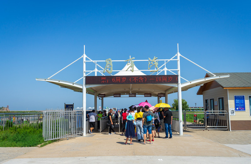 “一彎新月印灘涂,水碧山青舉世無(wú)。仙境不須求物外,行人步步踏明珠。”這是著名書(shū)法家啟功先生贊美月牙灣的詩(shī)句。