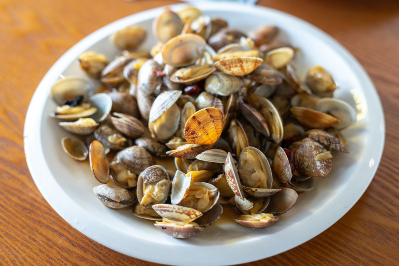 扇貝家常總愛(ài)蒸煮,就著醋就足夠鮮美。魷魚(yú)我最?lèi)?ài)鐵板魷魚(yú),加上厚厚的醬汁,雖說(shuō)會(huì)將海鮮的鮮味略微掩蓋,但是更添烤肉的重口,海鮮擼串兒兩不誤。而蛤蜊,在青島我們總愛(ài)讀作“gala”,夏日里的“哈啤酒,吃蛤蜊”可以算是青島的一大景,幾乎全城都被啤酒蛤蜊包圓兒了。