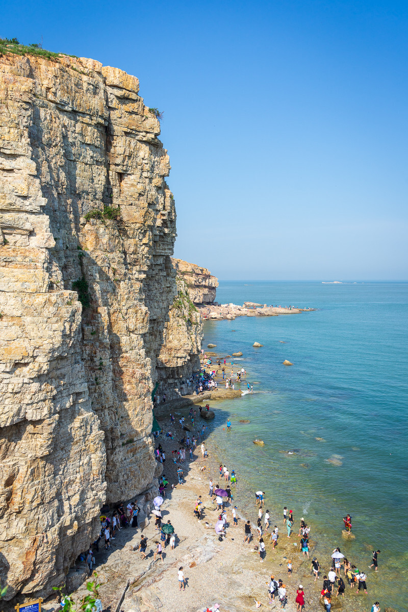 在一望無(wú)際的大海旁,是狹窄的礁石與砂石灘,而另一側(cè),便是直立的巖壁,高約70米,巖壁垂直陡峭,有些地方都高于90度。自詡不怕高的我,早在幾年前還夜爬過(guò)華山。可俯視這巖壁,還是忍不住心里發(fā)虛,可想若是在海邊抬頭仰望,這巖壁該是多么高大雄壯的奇觀。