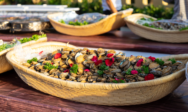 現(xiàn)場(chǎng)造了一只大船,形形色色、種類(lèi)繁多的海鮮通通放在船上的大簸箕里面,從船頭走到船尾,光看著口水就差點(diǎn)要流出來(lái)。