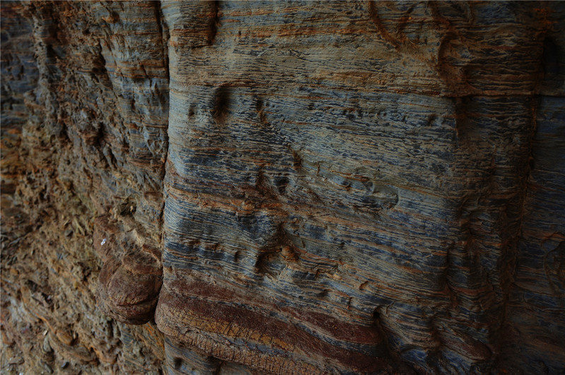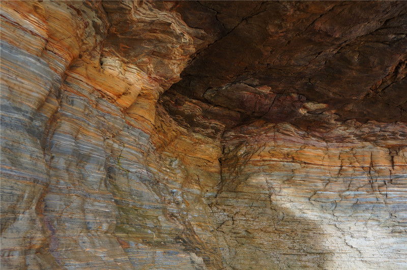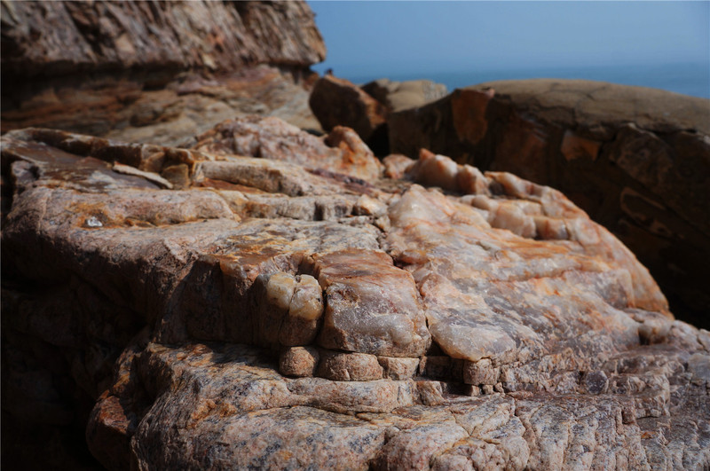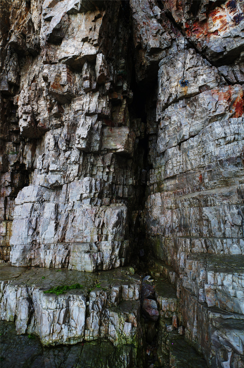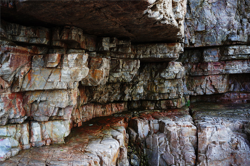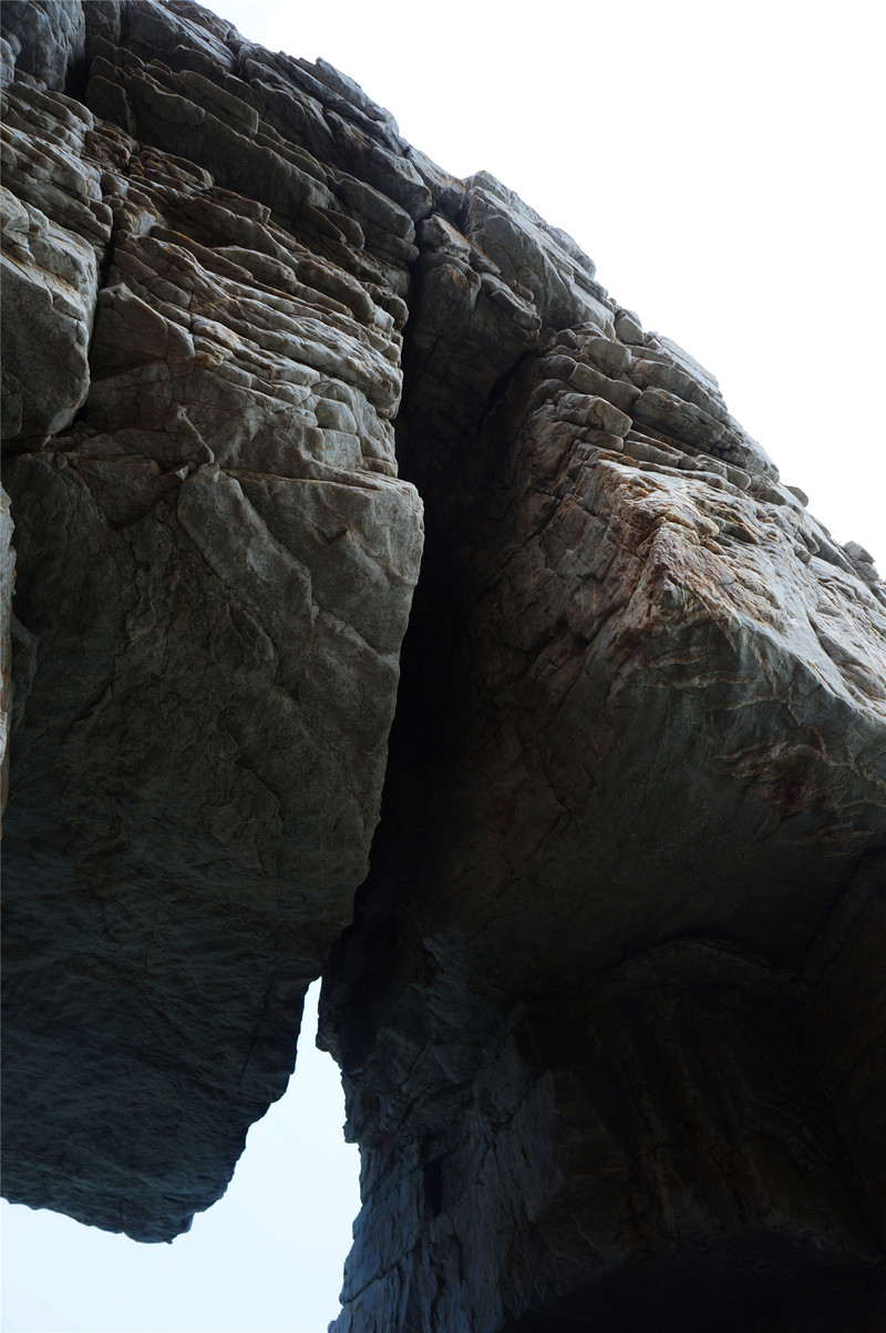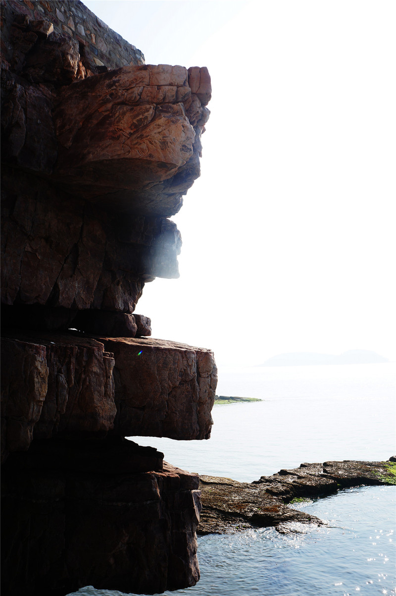 由于千萬年來狂風海浪的淘滌,原本垂直的石壁底凹上凸,出現了大于90度的傾斜,因而即使是烈日當空,崖下也能保留著一片陰涼。