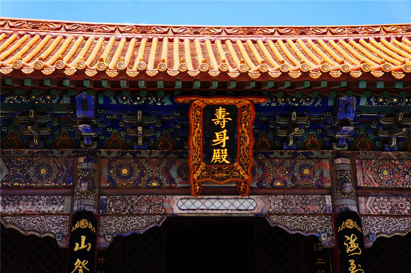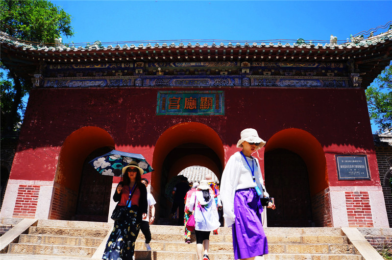 登上28級臺階,古樸雄偉的山門就呈現在眼前,山門建于明崇禎元年(公元1628年),有門洞三間,“顯應宮”三字嵌入琉璃匾額之上。山門內,有鐘、鼓二樓分列東西,“顯應宮”三個大字為崇禎皇帝御賜。