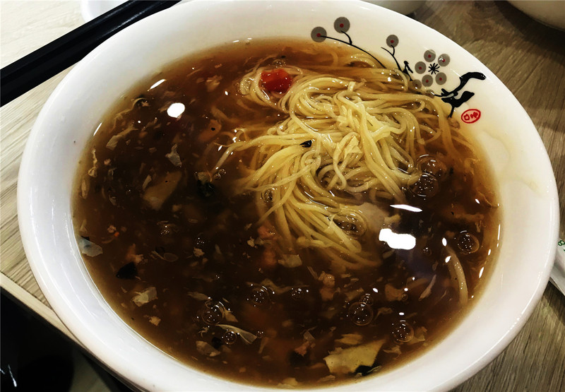 新鮮的鲅魚,去皮去骨去刺,剁成泥,加上適量的五花肉末和韭菜末調成餡,包成皮薄餡大的餃子。一咬開皮,鮮美的汁水就流了出來,完全沒有腥味,口感細嫩、鮮甜。就是個頭超級大,飯量小的朋友要加油了。類似的時鮮產品還有海菜包子。大到讓人懷疑人生。
