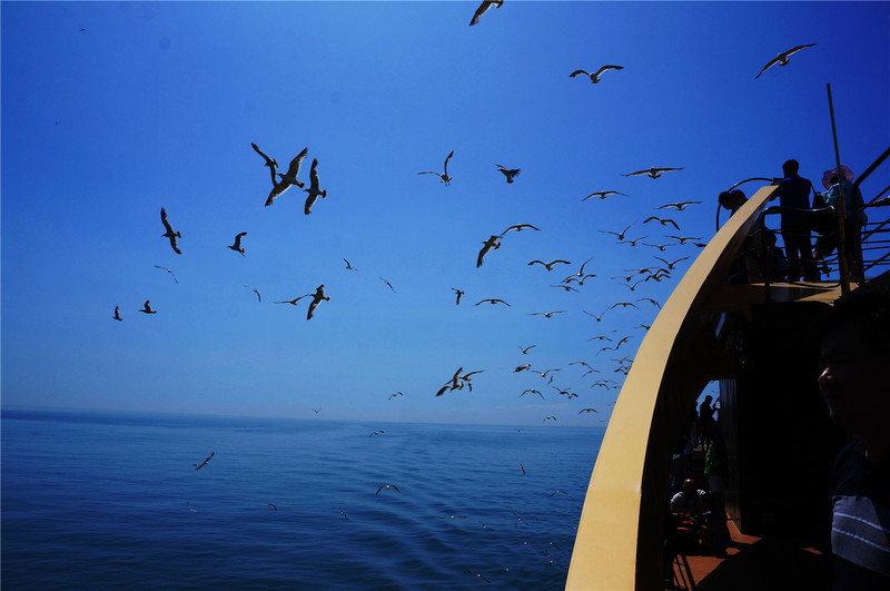 搭乘游輪前往萬鳥島,潔白的精靈振翅趨近,如同好客的主人,起舞歡唱,一路陪伴。空中和船側盡是翻飛的翅膀,場面壯觀而奇幻。我們和大多數游客一樣站在船甲板上投喂海鷗,與人類的朋友激情互動,隨便拍照也能捕捉到好多精彩瞬間。