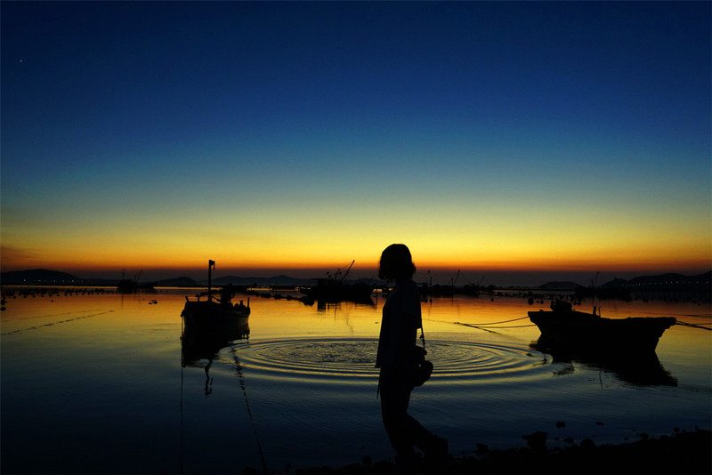 島上到處是出日落的絕佳地點,夕陽映照萬頃碧波,漁民悠然自得,漁船隨波漸遠,落霞與孤鶩齊飛,響窮漁島之濱。浮云落日,終有歸處。