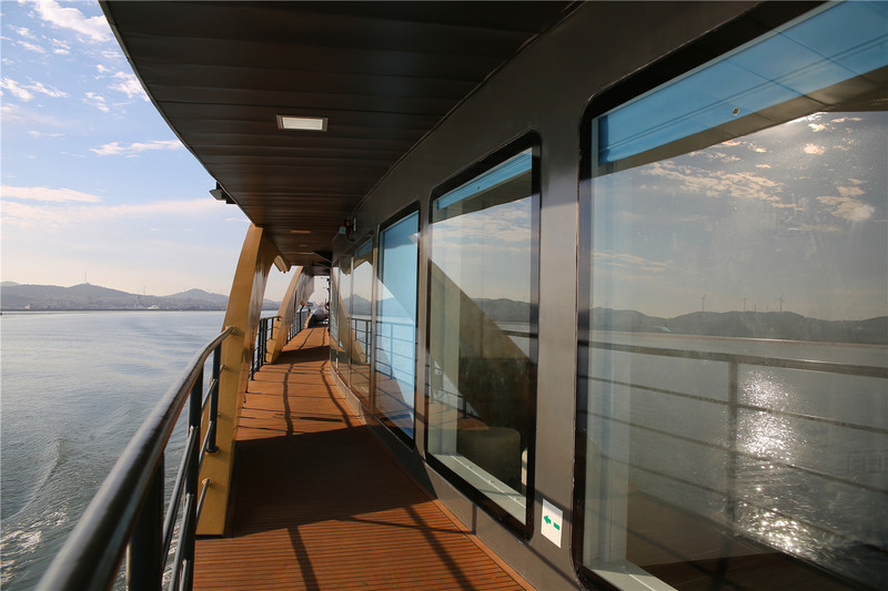長島——蓬萊航班,旅游季節(5-10月份)每天早6點至晚18點,每半小時一班,航程30至40分鐘,票價45元/人。需要帶車上島的話另有費用,轎車、越野車(SUV)、吉普車、商務車、8-12座面包車170元/輛。