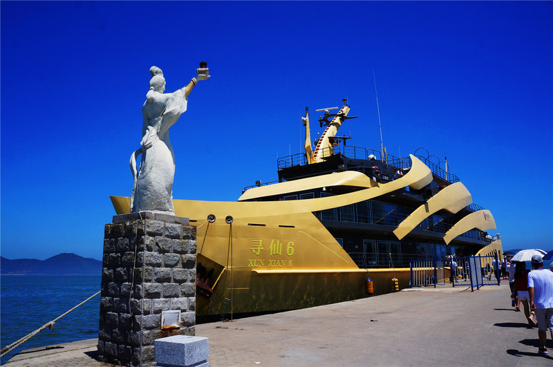 海上游尋仙六號,又稱“大黃”,呈現出的是三生三世十里桃花和八仙過海的創意主題,還有“姑姑”“姑父”傾情站臺,非常浮夸,也很帶感。↓↓↓