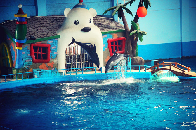 說實話蓬萊我們就去了海洋極地世界,這個海洋館還是挺大的,分好幾層,不得不說里面的東西還是挺全的,什么種類的海洋生物都有,而且布置的環境也特別好,一進去你會感受到類似于熱帶雨林的環境,營造的效果還不錯,海豚,海獅,海豹,企鵝什么都有還有人魚表演和潛水員喂食,(然而我覺得并沒有什么亂用,一點都不好看)唯一值得看的就是海豚表演什么的,然后因為時間原因我們還沒成,有點可惜,海洋管里最賺錢的就是喂食了,不出意外我們幾乎都喂了,一進門的食人魚,然后是海龜(他們都會跟你說這是三百年的海龜,摸摸沾沾靈氣,反正我聽的都是三百年只要是海龜),然后是海豹(這個真的是特別好玩,你拿著魚的時候它會跟著你轉圈,會沖著你叫,雖然叫的有點難聽,最逗的是它會拍肚皮,特別特別響),好像還有喂北極熊的,但是沒找到人,幾乎所有都是10元/人,這里有個小技巧,就是你跟他說兩個人20,給我們四份,也不是不可以,這樣你們可以多玩一會,雖然說20我也覺得虧,但是出去玩,玩的就是開心~不要在乎一點點小錢。
