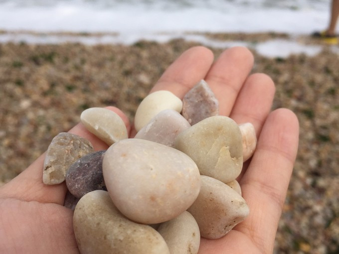月亮灣的石頭果然名不虛傳,好多人都在撿,我也加入了行列中,提著小桶撿起來
