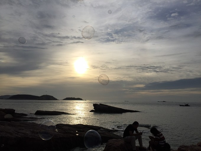 在九丈崖這個地方想等著看日落,結果有些小蟲子老是在叮我們,而且還是吸血的小蟲,被叮的好疼,所以果斷不等了而且趕緊日落肯定看不到啦!結果在我們回漁家的路上竟然看到了日落!哎不過也沒有關系因為我感覺住的村子里的日落要更美膩??
