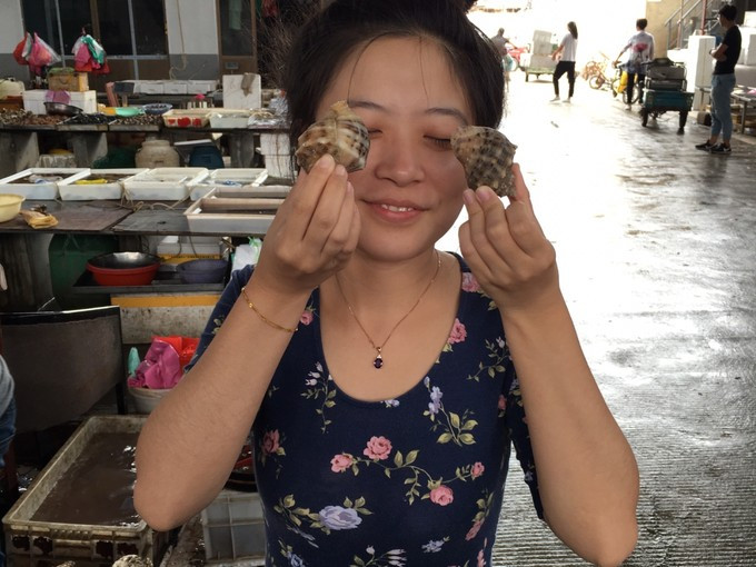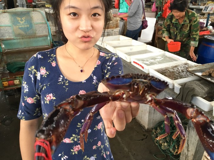 中午和熊熊一起跟著老板去海鮮市場采購食材,好奇的我是東瞅瞅西看看,好多海鮮都叫不上名字耶,不過熊??這個行家還是蠻厲害噠,邊給我介紹邊讓我拿著海鮮當道具拍照好開森哈哈哈