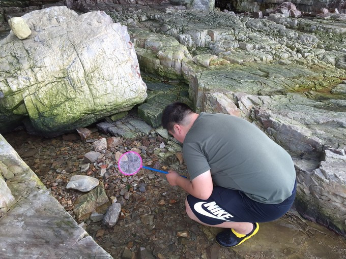 熊??就愛抓小魚小螃蟹小蝦,我只能默默在一旁看著他耶不過熊??還是蠻厲害雖然這里地形不利于抓東東但熊還是抓了3條小魚一條小蝦,本以為他們會活不過一天,結果誰知道竟然堅強的撐到我們離開也沒死掉呢好頑強的說