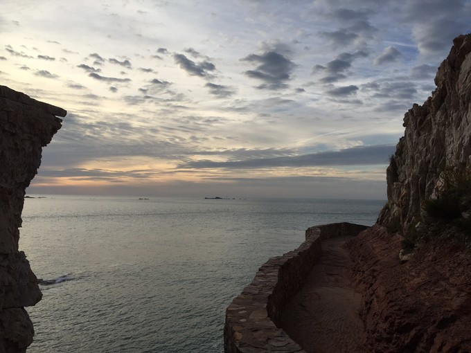 已經不早啦,下午回去昏昏大睡直到4點才去了九丈崖,據說九丈崖的落日很美,但是今天有些陰天所以估計看不到啦,不過還是抱著僥幸的心情想等等看日落