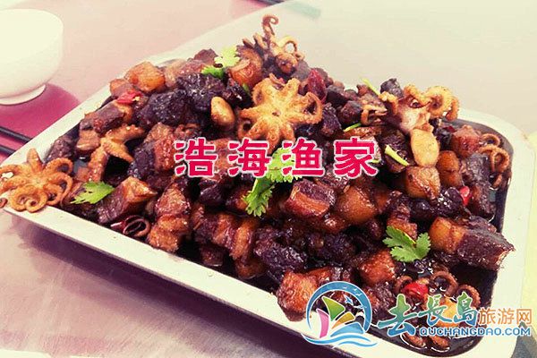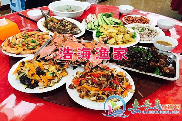 海鮮有 爬蝦、海膽、螃蟹、大對蝦、魷魚、八爪魚、扇貝、海虹、牡蠣、海參、鮑魚﹑江珧貝﹑夏邑貝﹑海牛牛﹑海螺,海蜇湯、 海菜包子、鲅魚水餃﹑等各種海鮮。
